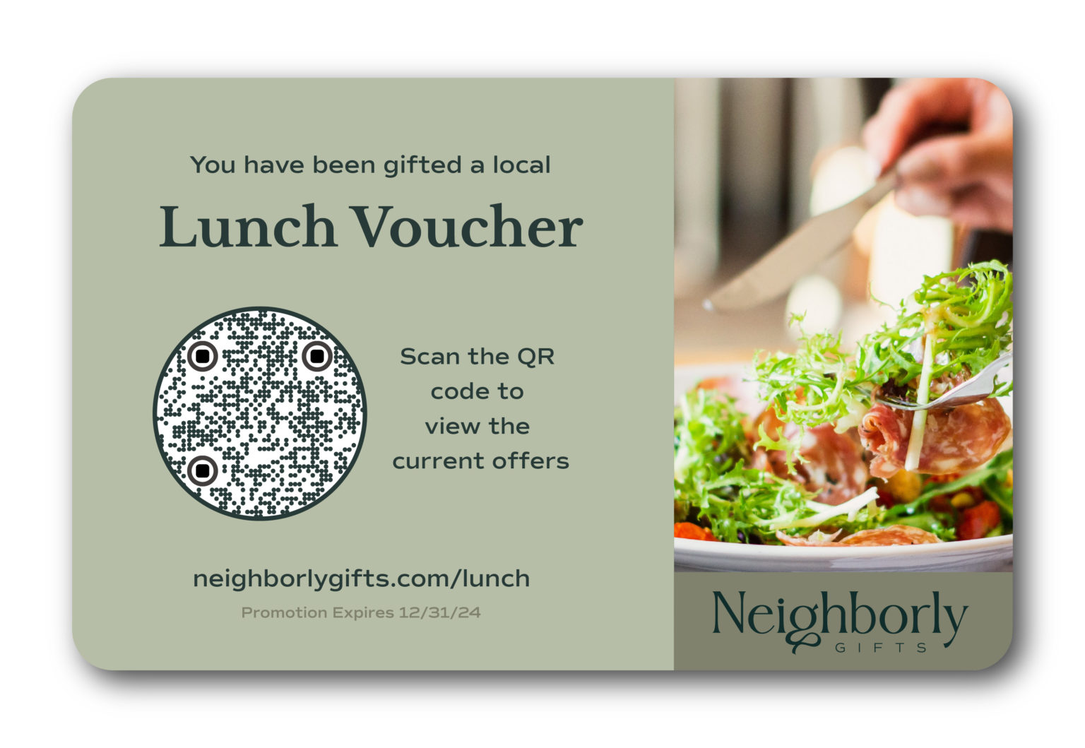 With our Restaurant Voucher Program, you can treat your team to lunch, dinner, or coffee and a pastry at their favorite participating local businesses. Gift recipients simply scan the card for the latest offerings, choose a restaurant or café, and then present the card at the time of purchase.